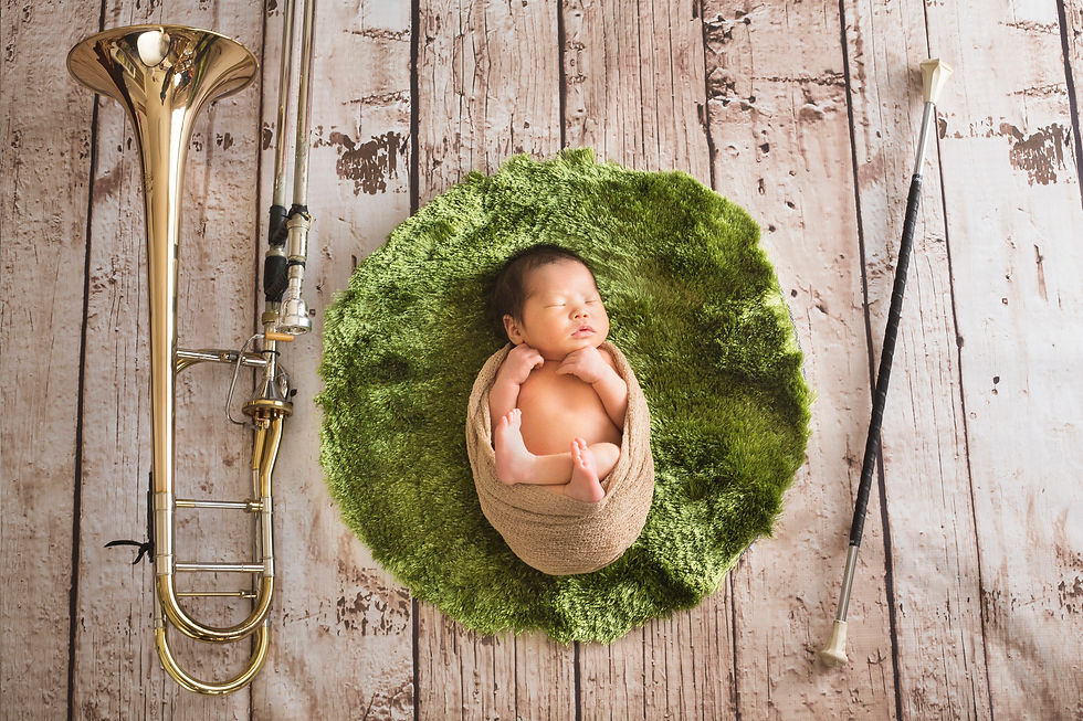 パパママのお仕事にちなんだカット。トロンボーンとバトンです。